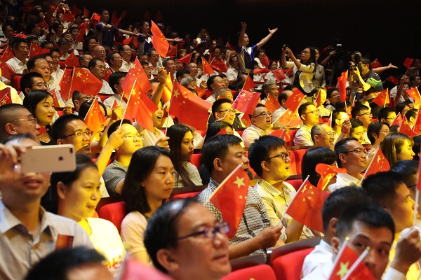 8月22日,国务院国资委党委主办的“放歌新时代•我和我的祖国”中央企业经典爱国主义歌曲歌咏优秀节目交流展演活动在京举行。国务院国资委党委书记、主任郝鹏,中华全国总工会党组书记、副主席、书记处第一书记李玉赋,副主席、书记处书记、党组成员阎京华,中国文联书记处书记、党组成员董耀鹏,国资委副主任、党委委员翁杰明、赵爱明、任洪斌等,和1000多名中央企业干部职工共同观看展演活动。