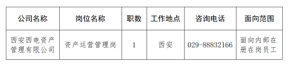 本次面向内部公开招聘岗位信息如下: